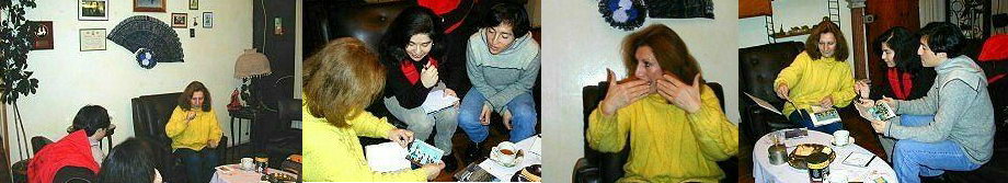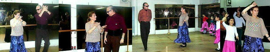 Tuvimos la oportunidad de apreciarla en dos facetas casi antagónicas, como 'maestra' y como alumna de nuestro conocido Fernando Sebastián Irarrazabal del Castillo, socio de nuestro Centro Cultural Nadaluz, su 'maestro' (como ella le llama), nos comenta que "dentro de la academia (de Fernando), el respeto es fundamental, por lo tanto, yo le llamo maestro. Fuera de la academia, somos amigos, nos tuteamos, etc., todo lo que quieran, pero mientras tanto..."Dentro de un tablao, nuestra "profe" (como cariñosamente le llamamos) se transforma en una alumna entusiasta que sigue atentamente al Maestro en todos sus pasos. Y es que tampoco se cansa de practicar: irrumpimos en la Academia de Fernando Sebastián un día sábado, ella puntualmente a las 5 de la tarde se encuentra ensayando en el Teatro Municipal junto a las pequeñas de la academia; luego continúa con el segundo grupo, para terminar con los más avanzados - que por lo general, se quedan hasta las 9 y media -. Casi 5 horas sin interrupción de ensayos, bailes, taconeos y posturas.