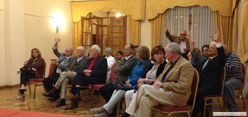 En el marco de nuestras actividades culturales, invitamos a Don Pedro Linares para rendirle un homenaje por su aporte a la música y en especial a la divulgación de la cultura hispánica. Para ello nos reunimos en el Salón Reina Isabel del Club Unión Española los socios del Centro y proyectamos el video "Antología de la Zarzuela", en que la compañía de Pedro Linares interpreta seleccionados segmentos de zarzuelas, una vez finalizada la proyección Pedro nos cantó varias canciones a viva voz desatando numerosos y espontáneos aplausos de los concurrentes, luego se le entregó un galvano y diploma de honor, acompañados de un dvd con su actuación en el club. Para finalizar, en el Salón Escorial, degustamos una sabrosa paella preparada especialmente para la ocasión.