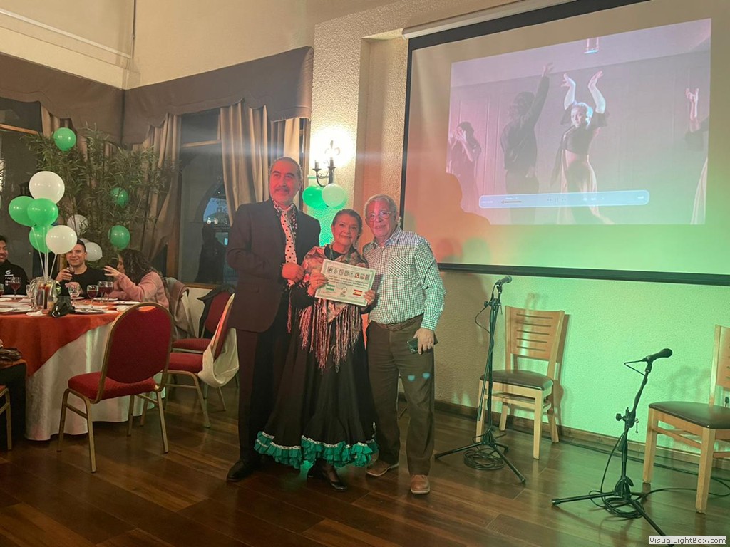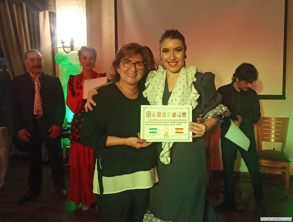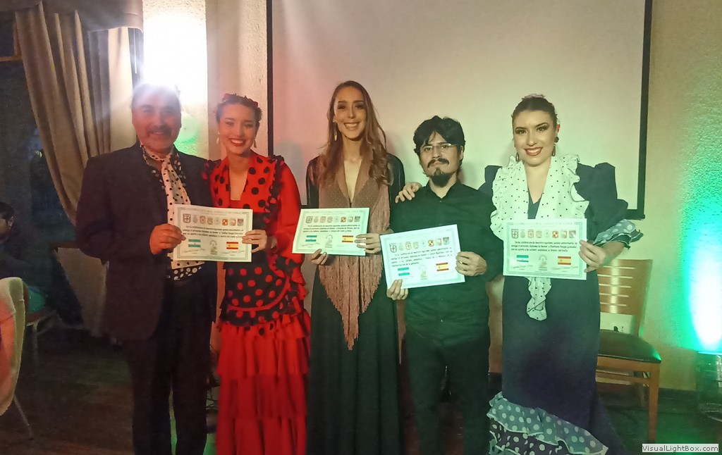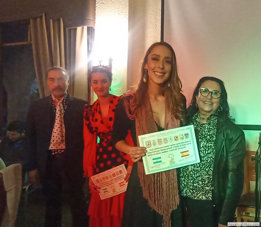 Este Viernes 30 de Junio, nos reunimos un grupo de socios y amigos en el Salón Reina Isabel del Club Unión Española de Valparaíso y Viña del Mar, para celebrar nuestro vigésimo quinto aniversario. La ceremonia fue conducida por Anita María Navarro Severín, quien invitó a cantar el himno andaluz, que fue coreado con gran fervor por todos. Después nuestro presidente Sr. Edgardo Aragú Pérez se dirigió a los presentes destacando el objetivo central de nuestra organización, que es divulgar la cultura andaluza. Entre los asistentes destacamos la presencia de Marisol Utreras Guerra, miembro del directorio central del CUE, la presidenta de la Colectividad Cántabra de Chile, Señora Mariana Saiz y familiares, el presidente de la Colectividad Gallega, Señor Jorge Serantes y esposa, además de los directores del Centro Andaluz, Sonia Araya, Hilda Campos, Luis Roca y Gastón Centeno. En la parte artística nuestra Socia Mónica Guerra entonó canciones andaluzas que fueron muy aplaudidas, Anita María declamó poesías de autores andaluces. Como número de baile, Flamenco Triana preparó una novedosa rutina, participaron Natalia de Triana, Bárbara, Emilia y Edgardo Aragú acompañados de la guitarra flamenca de Javier Martínes, se entregaron diplomas de honor a cada uno de ellos, además a Daniella Meneses, Gustavo Toro, Mónica Guerra, Anita María Navarro y Luis Roca, por su aporte a nuestra Colectividad. Al final de la celebración un grupo de entusiastas entonaron canciones de "Los Churumbeles de España". Jorge Serantes, presidente de los Gallegos realizó un sentido homenaje a la Patria Andaluza, que caló muy hondo y fue muy aplaudido por todos. Se entregaron como recuerdo unas hermosas tazas con dibujos y escudos andaluces, después algunos socios se entusiasmaron para bailar alegres sevillanas. El ganador de la rifa de la Patita de Jamón Serrano fue nuestro generoso socio Ricardo Morán, que la donó para nuestro alegre y divertido grupo "Los Pelagatos", que nos reuniremos próntamente a darle el bajo.