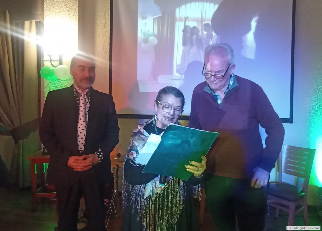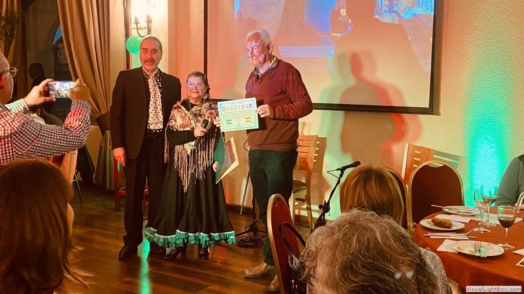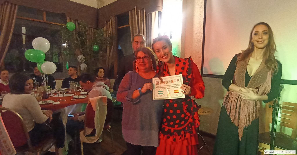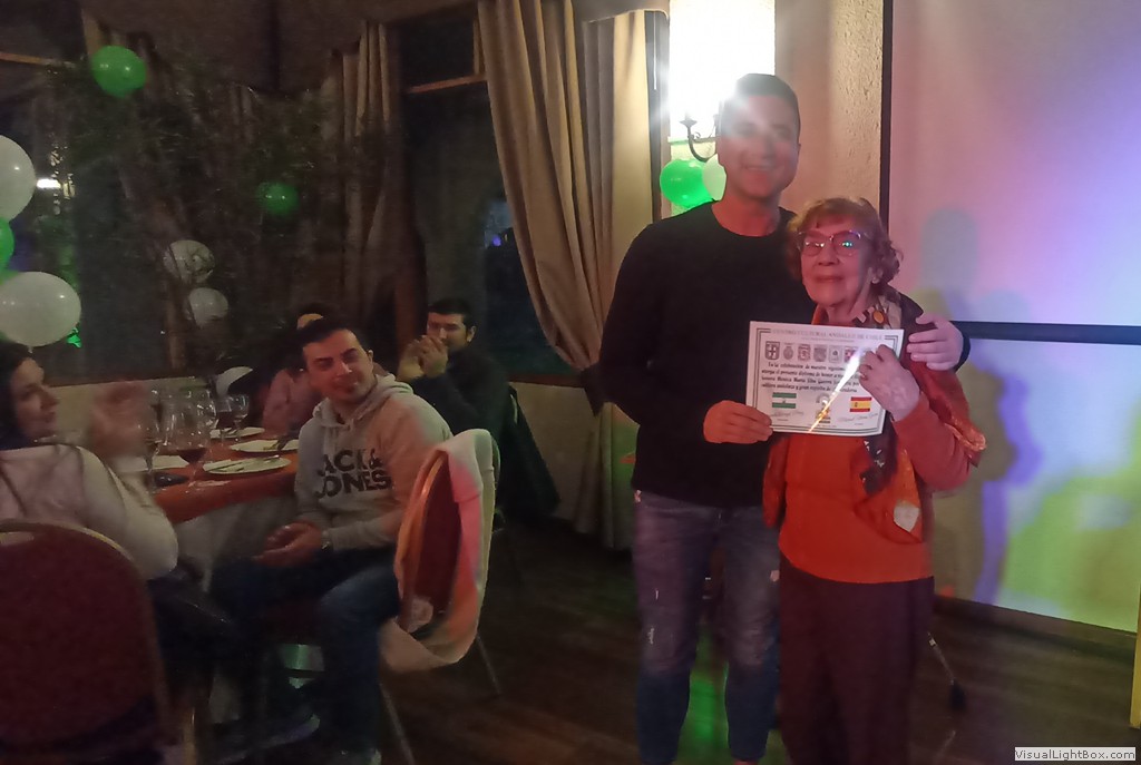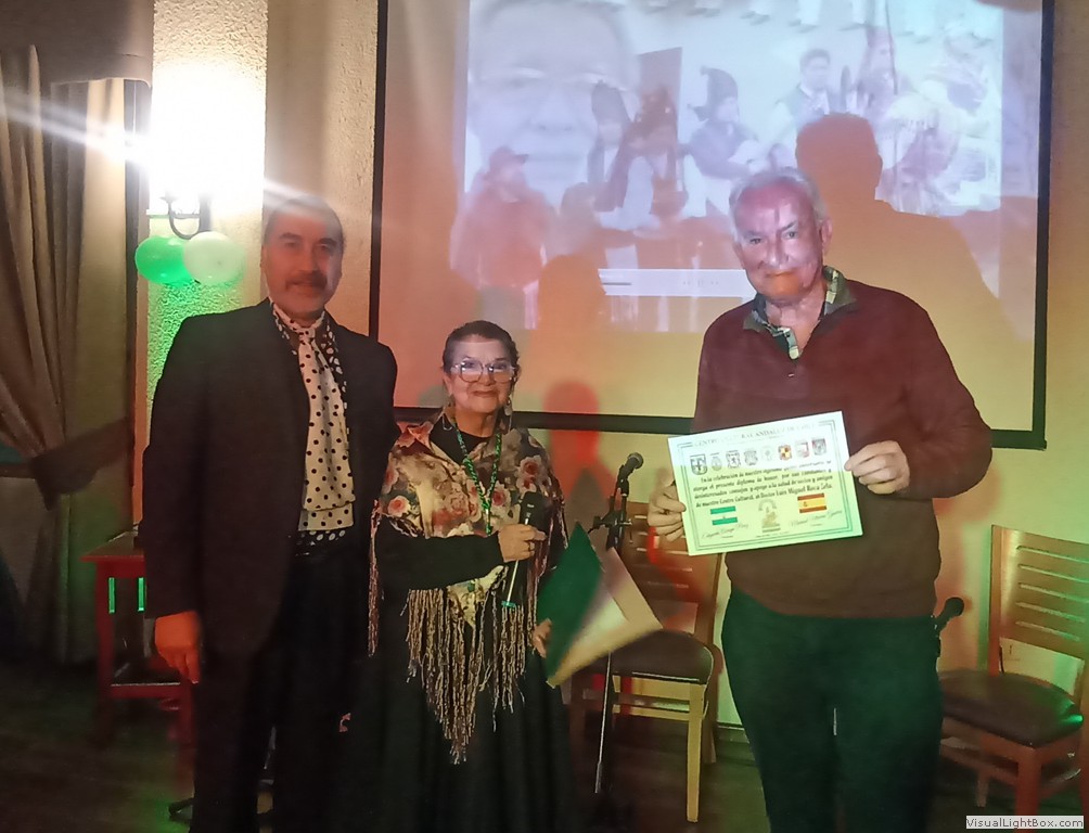 Este Viernes 30 de Junio, nos reunimos un grupo de socios y amigos en el Salón Reina Isabel del Club Unión Española de Valparaíso y Viña del Mar, para celebrar nuestro vigésimo quinto aniversario. La ceremonia fue conducida por Anita María Navarro Severín, quien invitó a cantar el himno andaluz, que fue coreado con gran fervor por todos. Después nuestro presidente Sr. Edgardo Aragú Pérez se dirigió a los presentes destacando el objetivo central de nuestra organización, que es divulgar la cultura andaluza. Entre los asistentes destacamos la presencia de Marisol Utreras Guerra, miembro del directorio central del CUE, la presidenta de la Colectividad Cántabra de Chile, Señora Mariana Saiz y familiares, el presidente de la Colectividad Gallega, Señor Jorge Serantes y esposa, además de los directores del Centro Andaluz, Sonia Araya, Hilda Campos, Luis Roca y Gastón Centeno. En la parte artística nuestra Socia Mónica Guerra entonó canciones andaluzas que fueron muy aplaudidas, Anita María declamó poesías de autores andaluces. Como número de baile, Flamenco Triana preparó una novedosa rutina, participaron Natalia de Triana, Bárbara, Emilia y Edgardo Aragú acompañados de la guitarra flamenca de Javier Martínes, se entregaron diplomas de honor a cada uno de ellos, además a Daniella Meneses, Gustavo Toro, Mónica Guerra, Anita María Navarro y Luis Roca, por su aporte a nuestra Colectividad. Al final de la celebración un grupo de entusiastas entonaron canciones de "Los Churumbeles de España". Jorge Serantes, presidente de los Gallegos realizó un sentido homenaje a la Patria Andaluza, que caló muy hondo y fue muy aplaudido por todos. Se entregaron como recuerdo unas hermosas tazas con dibujos y escudos andaluces, después algunos socios se entusiasmaron para bailar alegres sevillanas. El ganador de la rifa de la Patita de Jamón Serrano fue nuestro generoso socio Ricardo Morán, que la donó para nuestro alegre y divertido grupo "Los Pelagatos", que nos reuniremos próntamente a darle el bajo.