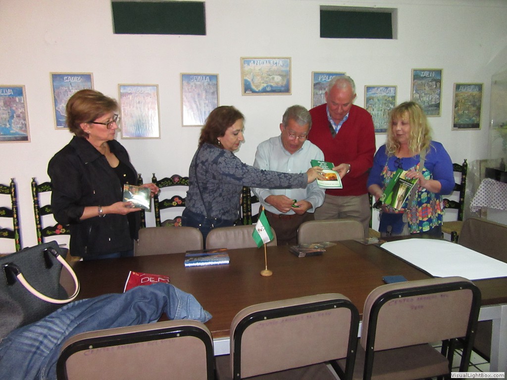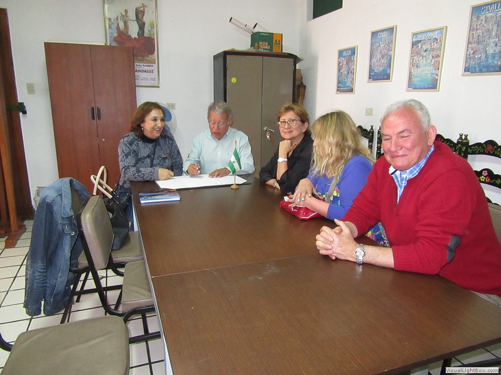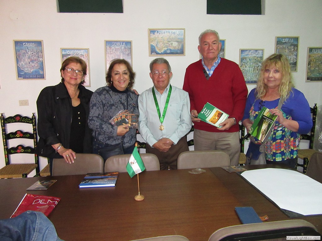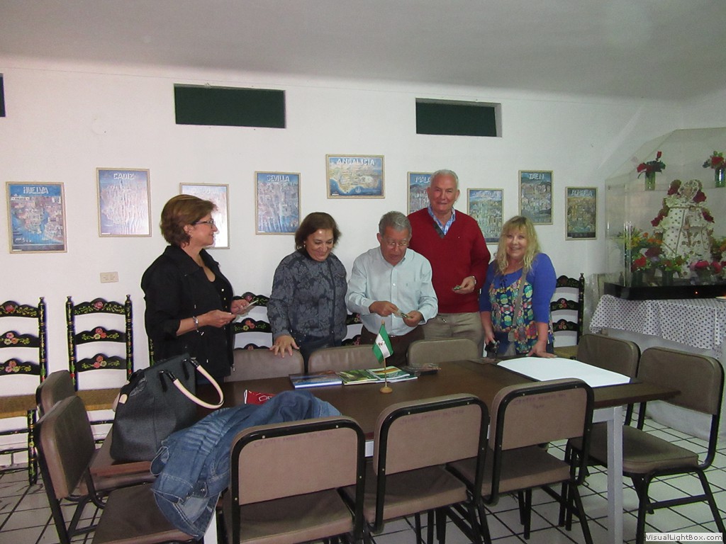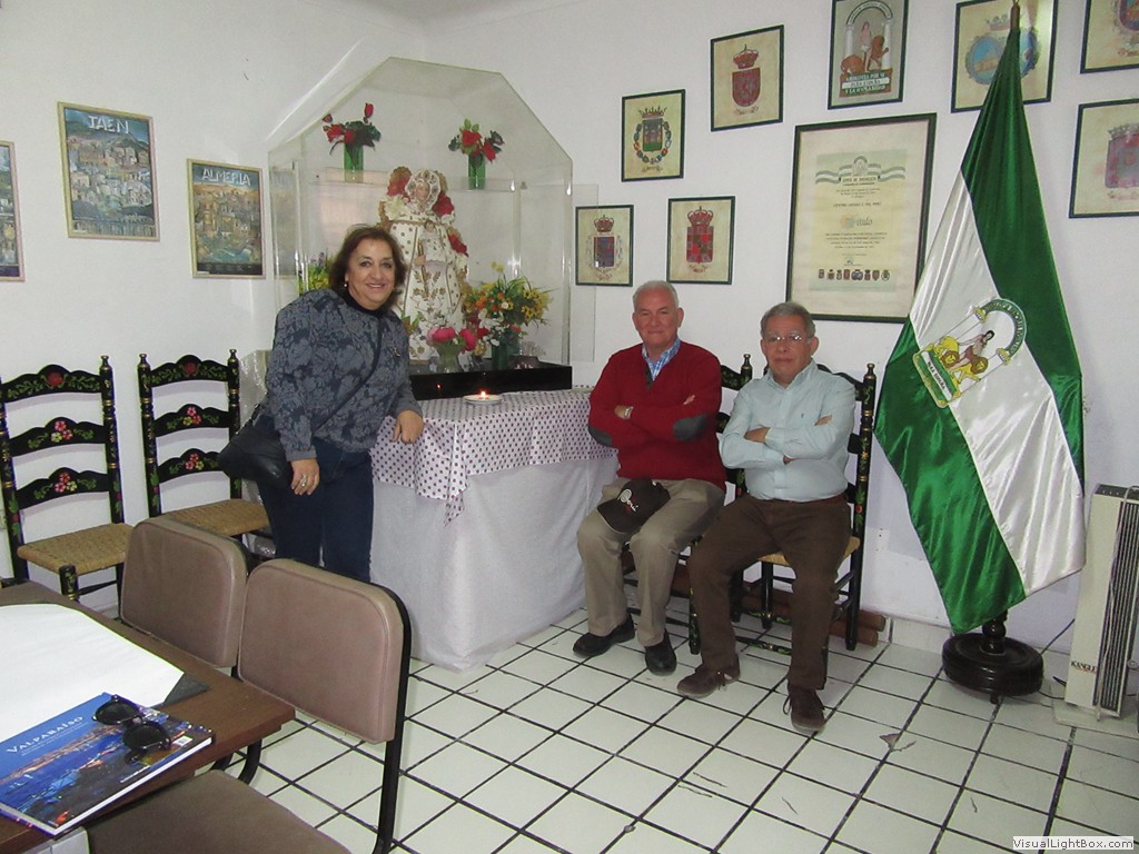 Carmen nos entregó a cada uno de nosotros unas maravillosas medallas de la Virgen del Rocío, que ahora las ocuparemos en nuestras celebraciones. La delegación estaba integrada por Gastón Centeno Pozo; presidente del Centro Cultural Andaluz de Chile, su esposa y socia María Angélica Rosati Canepa, nuestro director Luis Roca Zela y su esposa la socia Hilda Campos Contardo. Aprovechamos la oportunidad para tomar numerosas fotografías que publicamos a continuación.