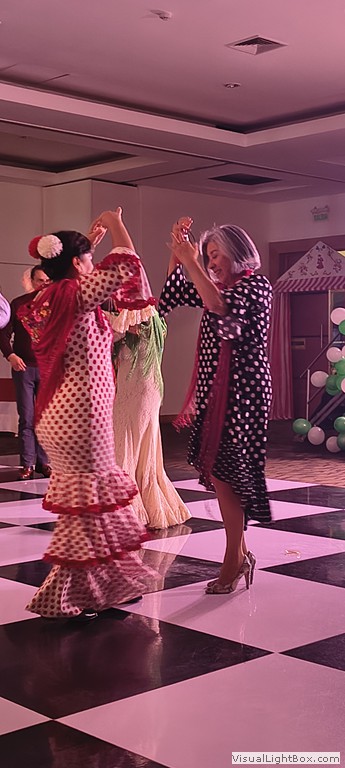 Jorge Serantes Cristal, presidente de la comunidad Gallega del Estadio, tomó la palabra y rindió un sentido homenaje a Edgardo Aragú Pérez, por su brillantes trayectoria en el Club y su valioso aporte a nuestra comunidad española. Por supuesto "Flamenco Triana" no podía estar ausente y realizaron una hermosa presentación, sorpresivamente Natalia Aragú, ingresó cantando "A mi Manera", mientras se desplazaba por las mesas hasta llegar al escenario, a continuación un grupo de alumnas bailaron entretenidas y alegres Sevillanas y como broche de fondo, Bárbara Aragú bailó magistralmente haciendo hermosos movimientos con su manta española.
