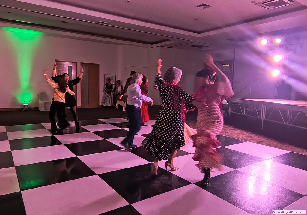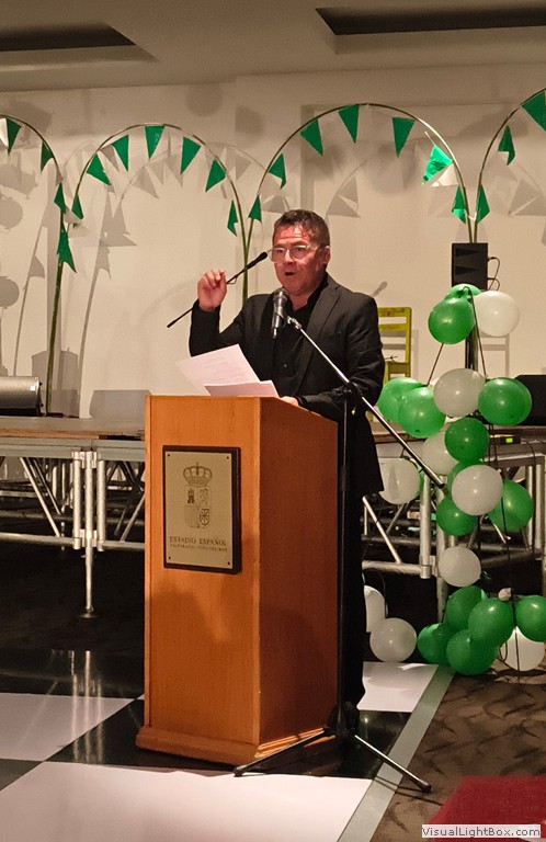 Jorge Serantes Cristal, presidente de la comunidad Gallega del Estadio, tomó la palabra y rindió un sentido homenaje a Edgardo Aragú Pérez, por su brillantes trayectoria en el Club y su valioso aporte a nuestra comunidad española. Por supuesto "Flamenco Triana" no podía estar ausente y realizaron una hermosa presentación, sorpresivamente Natalia Aragú, ingresó cantando "A mi Manera", mientras se desplazaba por las mesas hasta llegar al escenario, a continuación un grupo de alumnas bailaron entretenidas y alegres Sevillanas y como broche de fondo, Bárbara Aragú bailó magistralmente haciendo hermosos movimientos con su manta española.